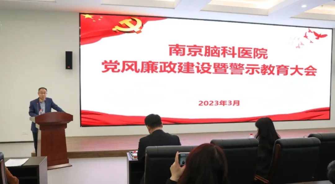 為深入貫徹黨的二十大關(guān)于全面從嚴(yán)治黨戰(zhàn)略部署,落實(shí)省市紀(jì)委全會、市衛(wèi)生健康系統(tǒng)全面從嚴(yán)治黨工作暨警示教育大會精神,2023年3月29日下午,南京腦科醫(yī)院召開黨風(fēng)廉政建設(shè)暨警示教育大會。會議由黨委副書記、院長趙太宏主持,院領(lǐng)導(dǎo)班子、中層干部、科主任助理及重點(diǎn)崗位人員參加會議。紀(jì)委書記史忠通報(bào)了國家衛(wèi)生健康委辦公廳關(guān)于近期醫(yī)藥購銷領(lǐng)域和醫(yī)療服務(wù)中不正之風(fēng)典型案件。