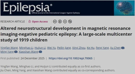 2025年12月24日,南京醫(yī)科大學(xué)附屬腦科醫(yī)院王小姍教授、南京醫(yī)科大學(xué)附屬兒童醫(yī)院楊明教授團(tuán)隊(duì)及南京大學(xué)醫(yī)學(xué)院附屬鼓樓醫(yī)院陳玖教授在國(guó)際癲癇聯(lián)盟(International League Against Epilepsy, ILAE)官方期刊 Epilepsia 發(fā)表了題為“Altered neurostructural development in magnetic resonance imaging-negative pediatric epilepsy: A large-scale multicenter study of 1919 children”的研究論文。該研究通過(guò)對(duì)迄今最大規(guī)模的MRI陰性兒童癲癇隊(duì)列的系統(tǒng)性分析,描繪了患者在4-12歲期間大腦結(jié)構(gòu)的發(fā)育軌跡,并揭示了其異常發(fā)育的兩種獨(dú)特模式:一個(gè)關(guān)鍵的4-9歲“脆弱窗口期”內(nèi)的短暫發(fā)育偏離,以及一個(gè)進(jìn)行性的、始于邊緣系統(tǒng)并逐步累及丘腦的灰質(zhì)網(wǎng)絡(luò)重組。這一發(fā)現(xiàn)為理解兒童癲癇的病理生理機(jī)制提供了全新視角,并為疾病的精準(zhǔn)干預(yù)提供了潛在的影像學(xué)標(biāo)志物。
